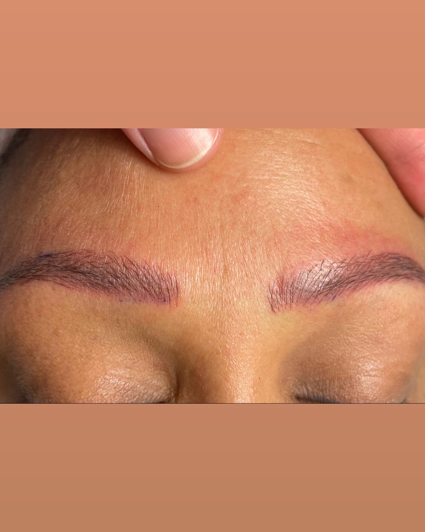 Microblading is a safe facial procedure performed by a Professional Esthetician, on your eyebrow area. Your service provider will carefully map out your newly, redesigned brow shape. Enhancing and customizing your eyebrows, will assist in complimenting your already beautiful facial structure. Before the service begins we apply a generous layer of Zensa cream, which contains Lidocaine. Lidocaine is a natural ingredient that helps to numb the surface of your skin. This product will ensure you feel less pain and prevents the need for advil, as it can thin your blood. The use of hypoallergenic ink is applied to your eyebrow area to create small micro-tears, called semi-permanent tattooing. It is vital to create an even and balanced brow shape in order to display your natural and attractive qualities.